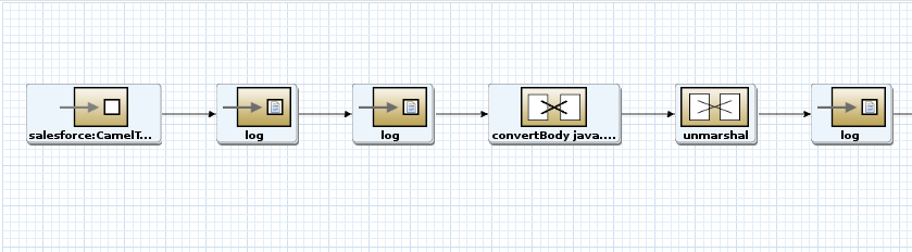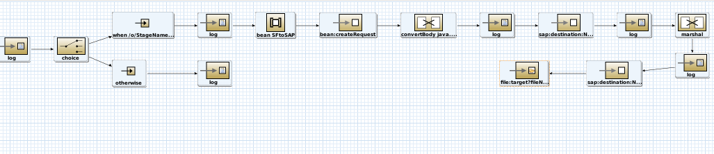 The Camel Route monitors the change on the Stage for an opportunity and sends the data to SAP for a customer to be created. An additional camel route allows the update of the stage in the opportunity in Salesforce.